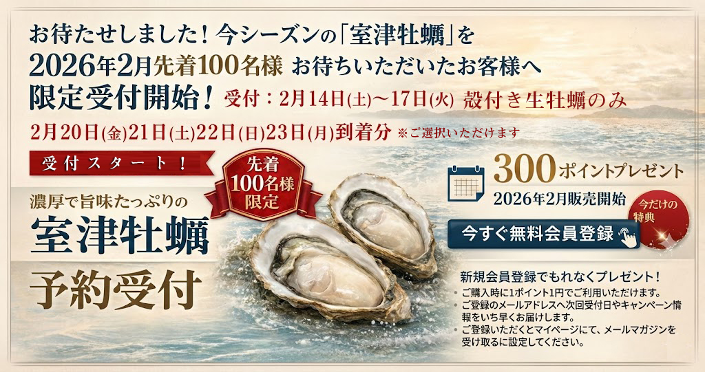 - 🦪【数量限定】室津牡蠣 先着100名様 予約受付開始のお知らせ│オンラインショップ